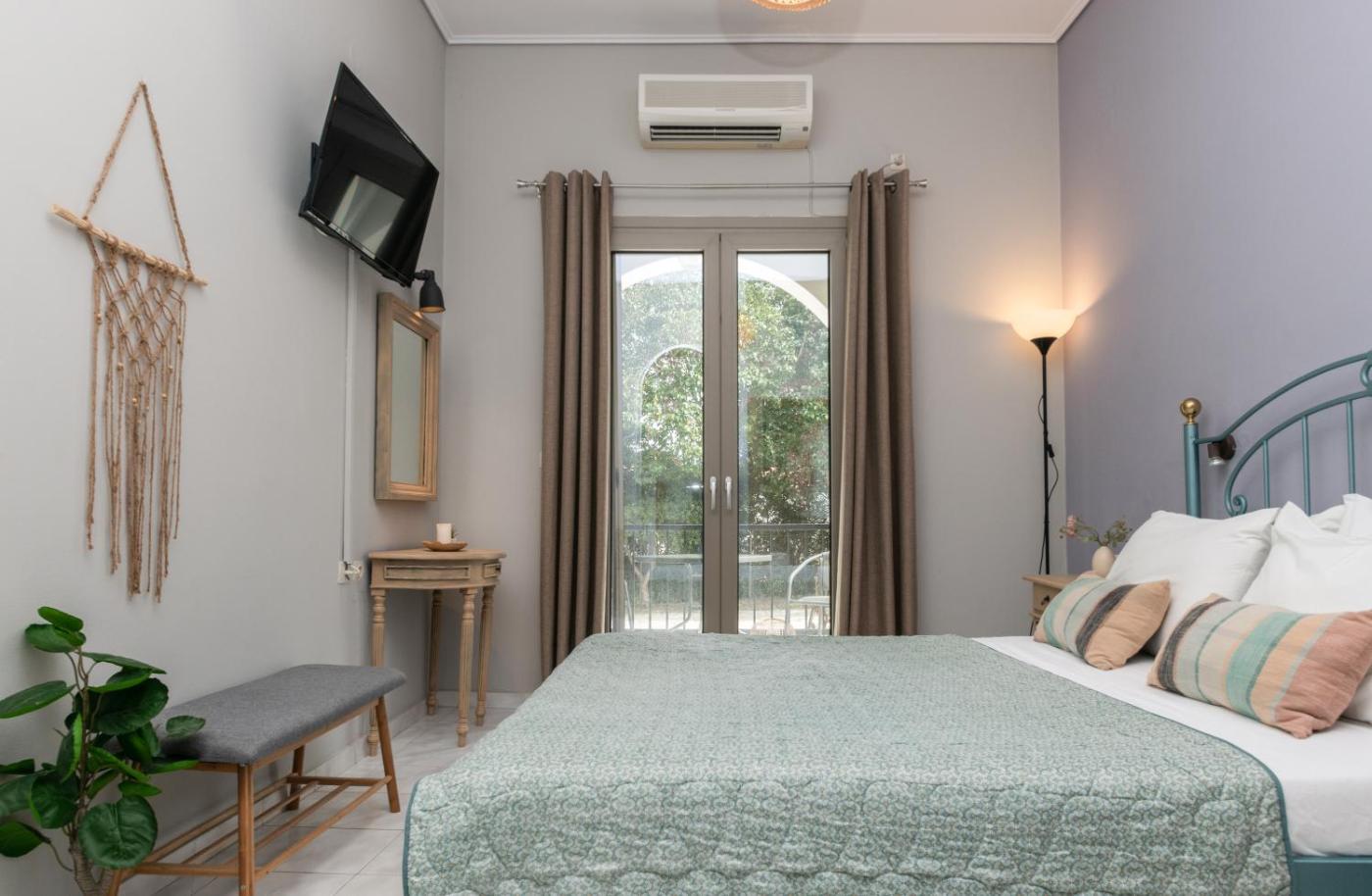 Τρίκλινο Δωμάτιο. The triple room has a private bathroom, air conditioning, a tea and coffee maker, as well as a seating area with a flat-screen TV. The triple room features a wardrobe and a balcony. The unit has 2 beds. ;