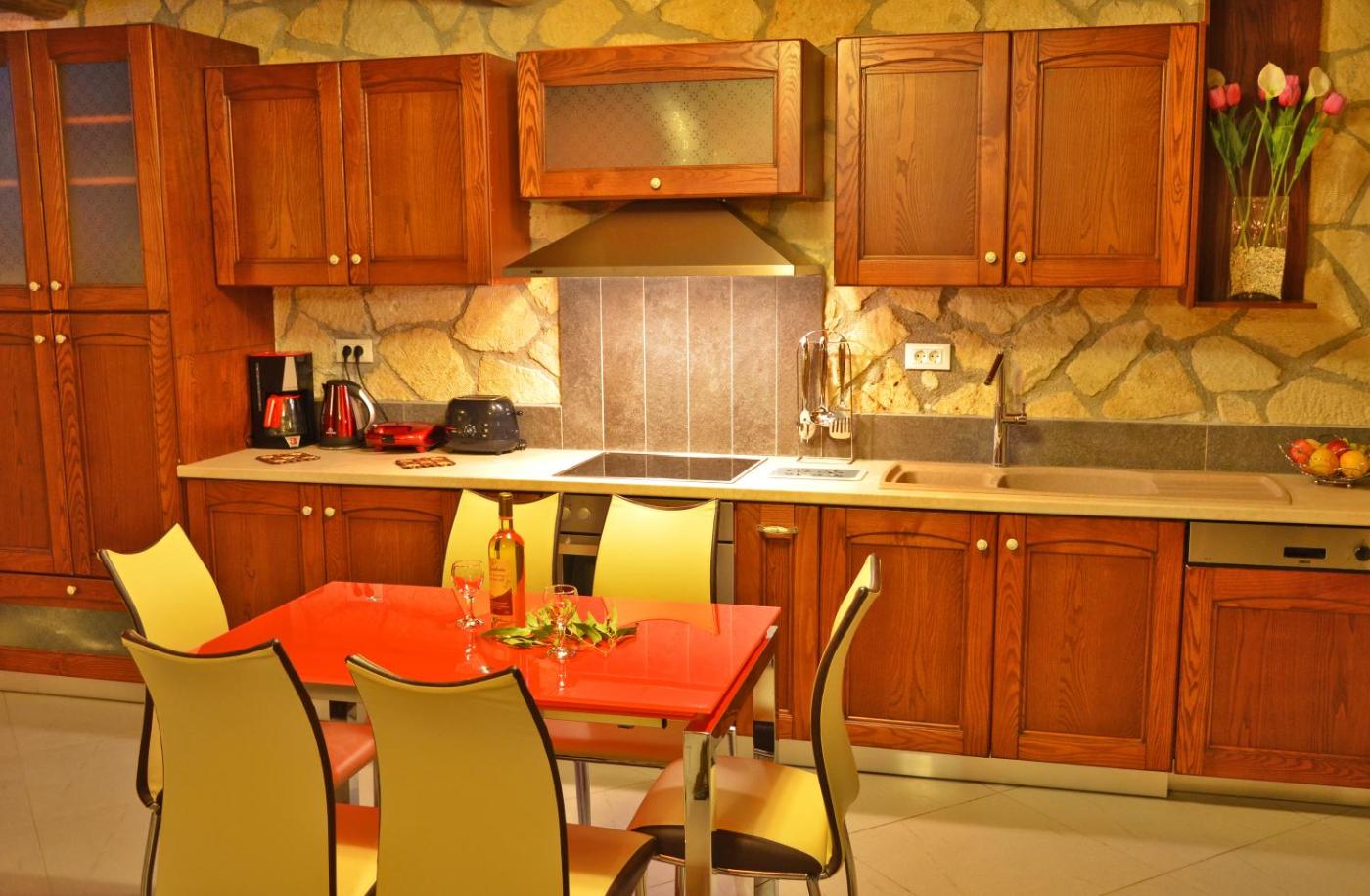 Η βίλα διαθέτει κλιματισμό και κομψή διακόσμηση με λεπτομέρειες από πέτρα ή τούβλο και οροφή με ξύλινα δοκάρια. Περιλαμβάνει καθιστικό με τζάκι, καναπέδες και τηλεόραση επίπεδης οθόνης. Η κουζίνα είναι εξοπλισμένη με φούρνο και ηλεκτρική κουζίνα. Το μπάνιο έχει ντους και μπανιέρα-υδρομασάζ.