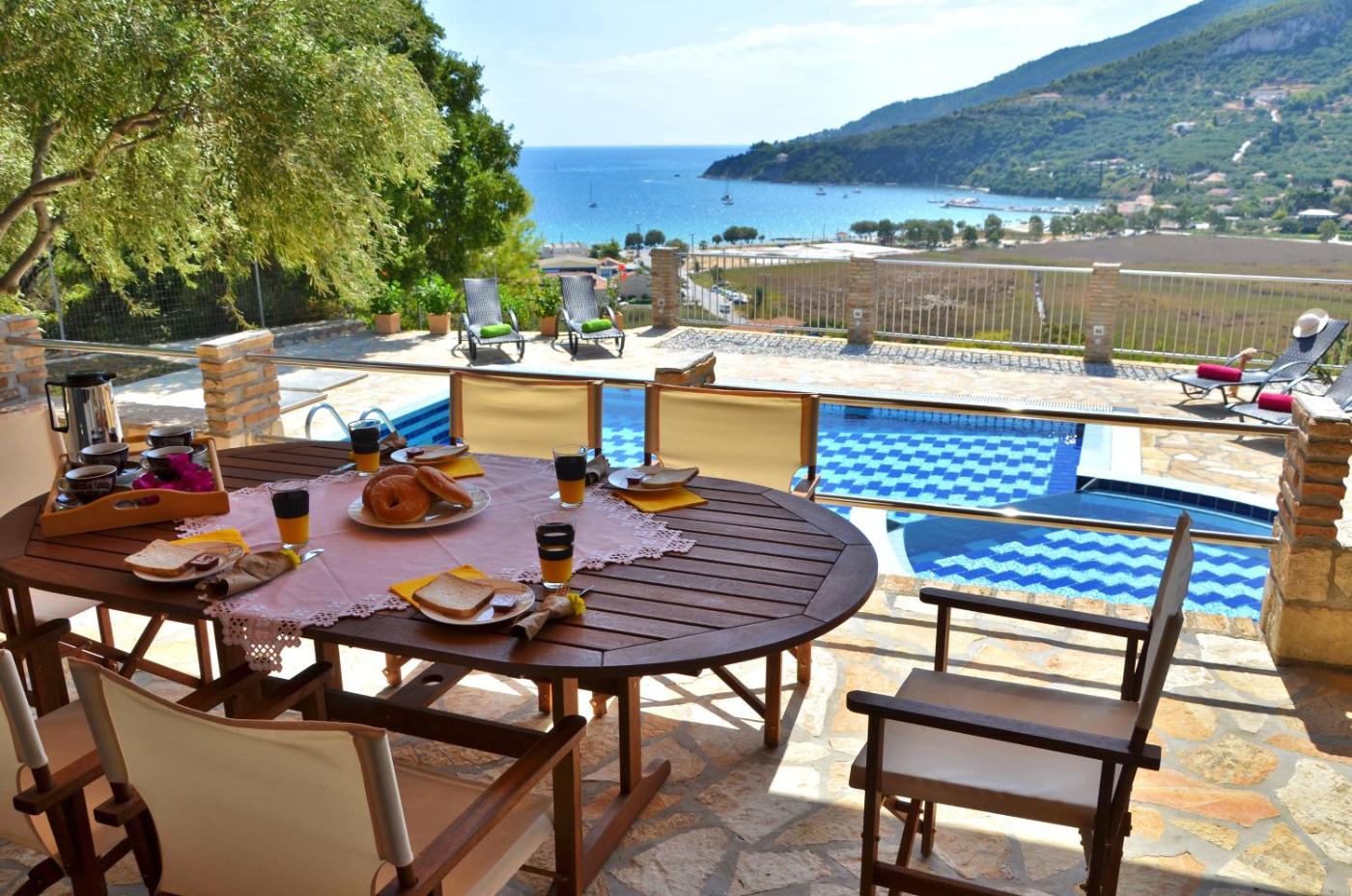 Βίλα με Ιδιωτική Πισίνα. Featuring an outdoor pool and terrace overlooking the sea, the air-conditioned villa includes free WiFi. It has a seating area with fireplace, sofas and flat-screen TV. The kitchen is equipped with a stove and oven. The bathroom comes with a shower and spa bath.
